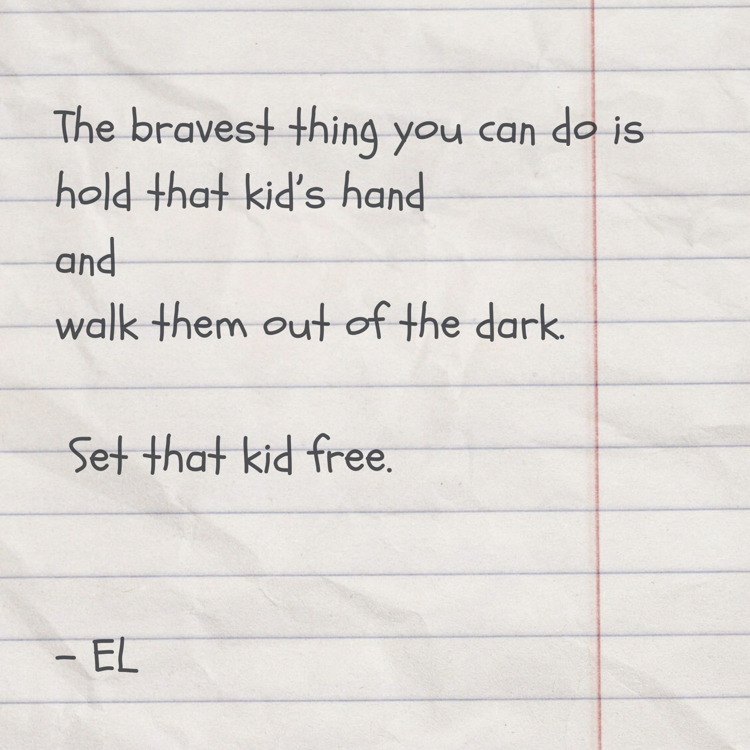 The bravest thing you can do is hold that kid’s hand and walk them out of the dark. Set that kid free.